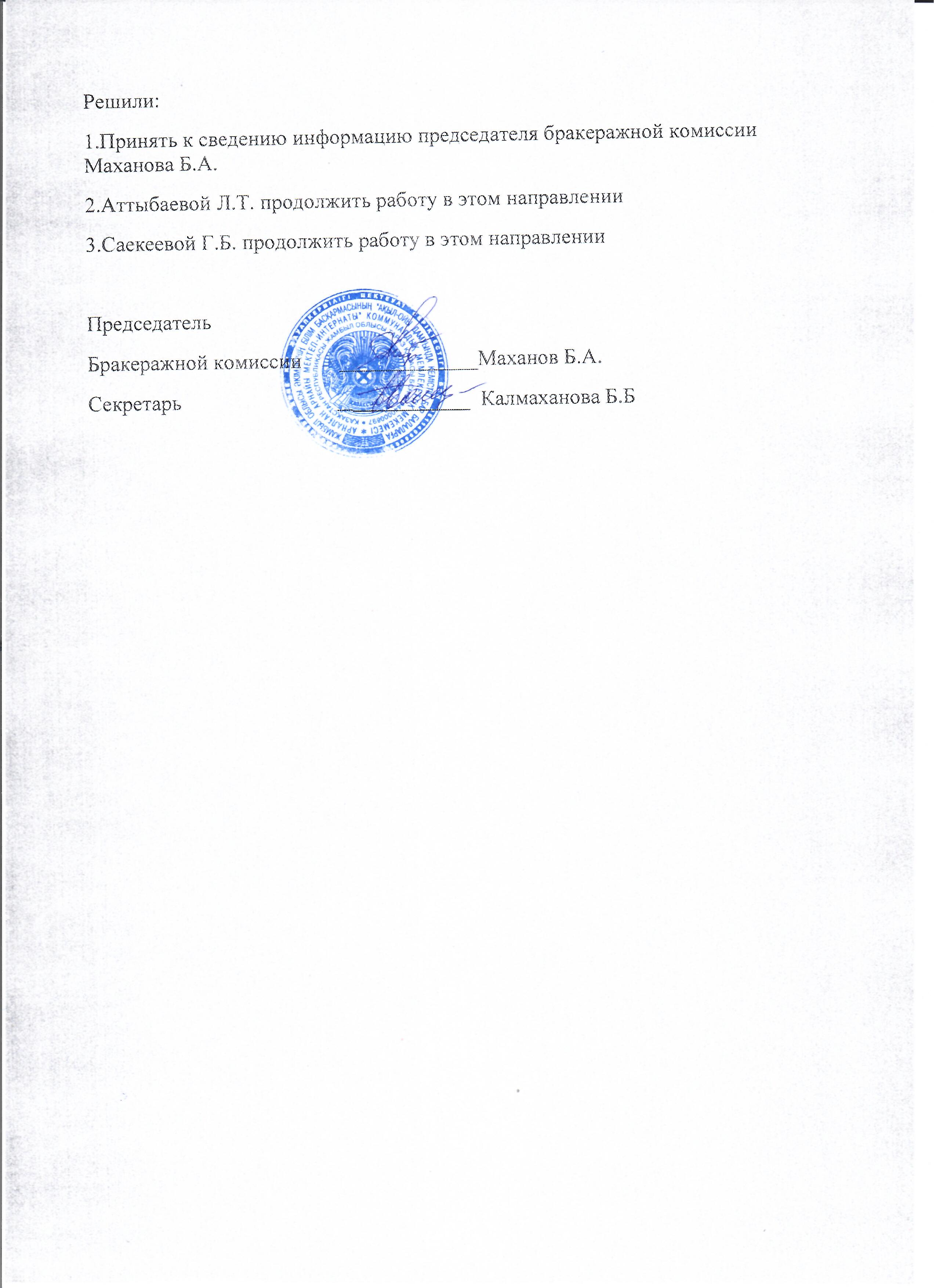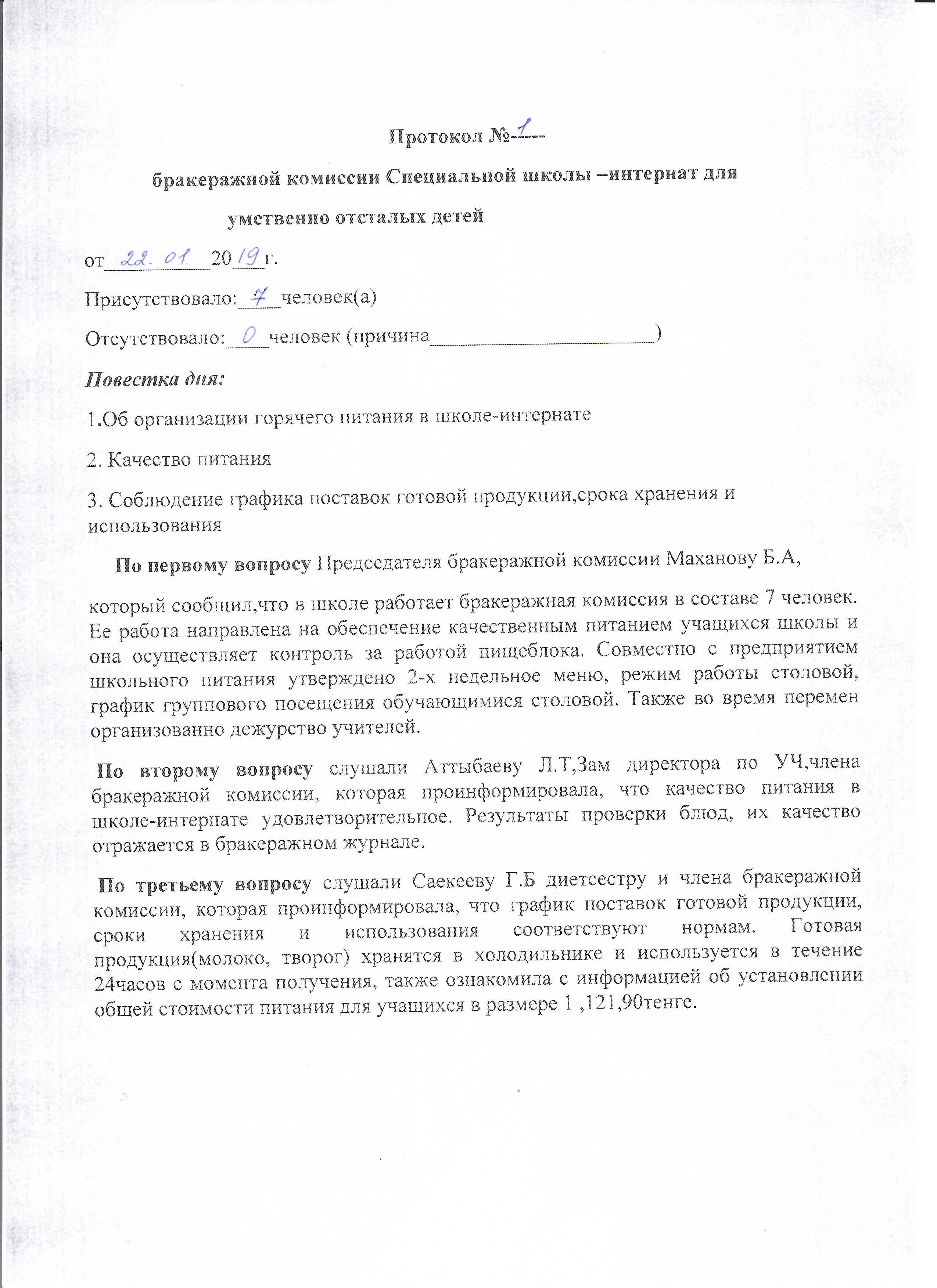 Протокол №1 бракеражной комисии