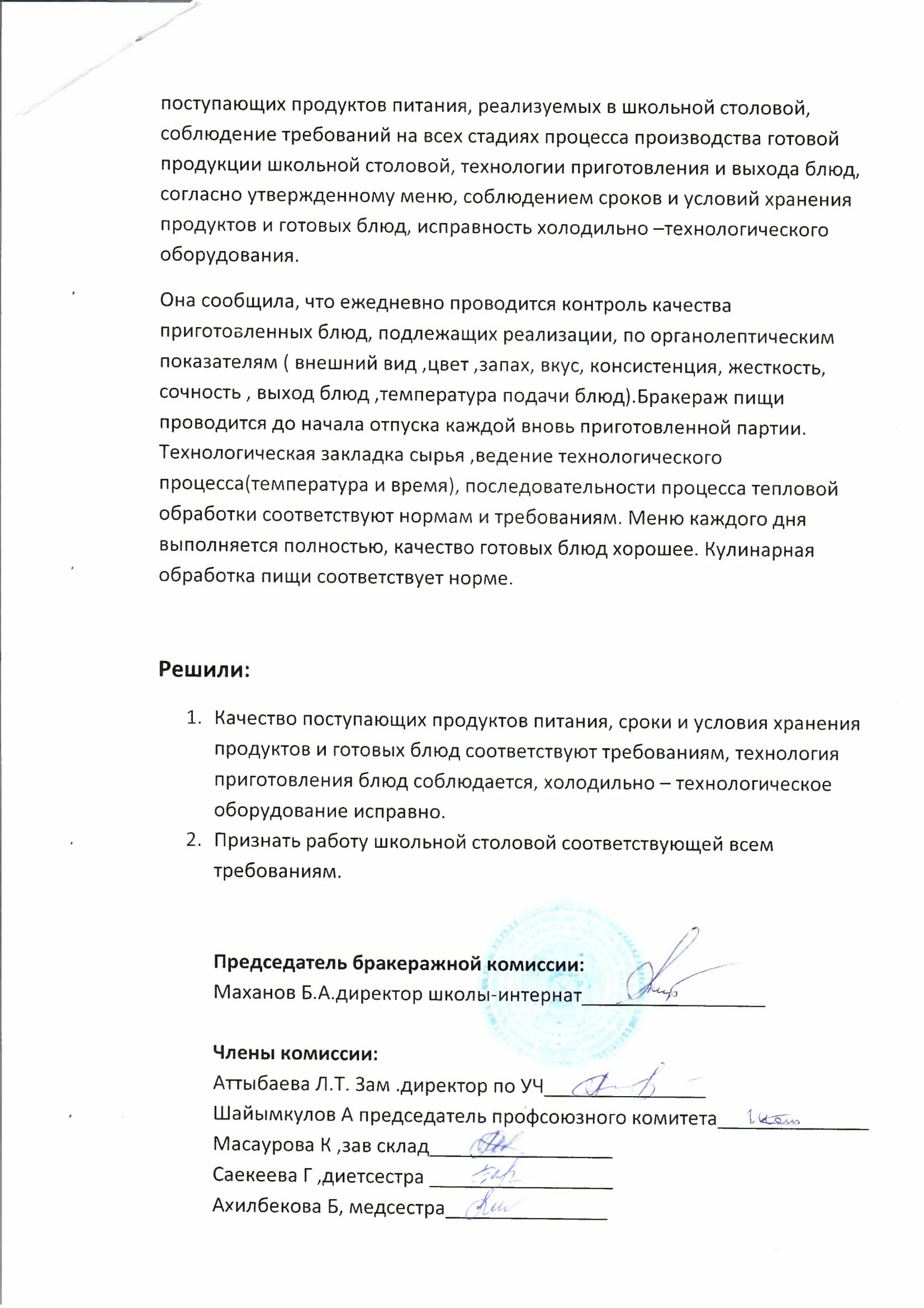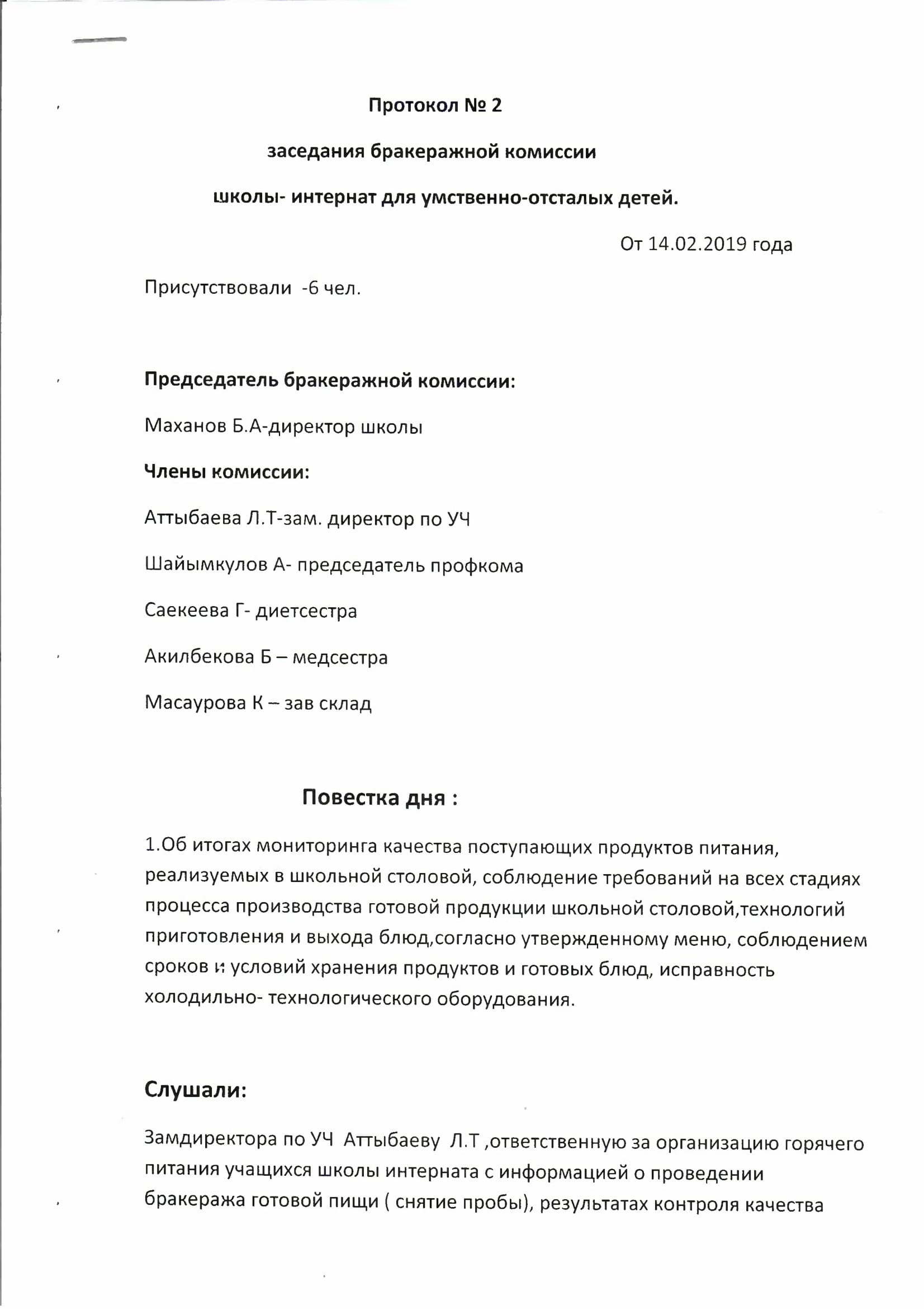 Протокол №2 заседания бракеражной комиссии от 14.02.2019